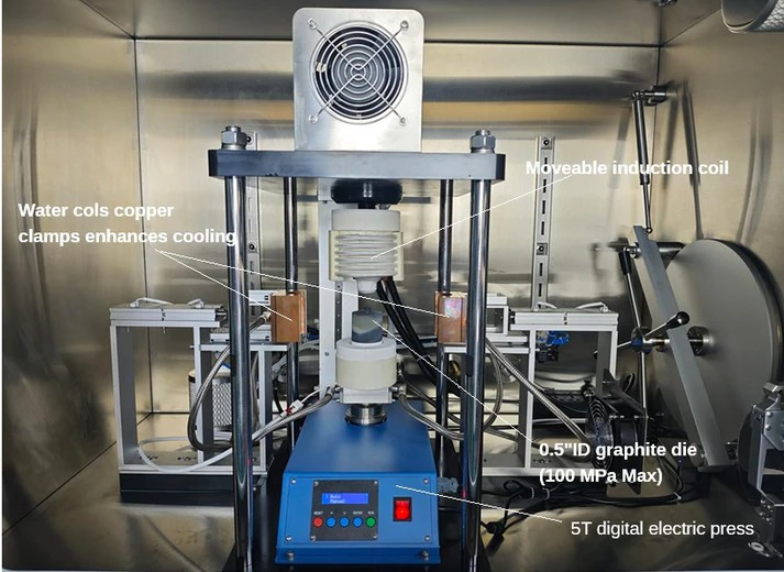 By combining rapid induction heating, active fast cooling, and glove-box integration, the GBF-1700-RHP4 enables material synthesis under conditions not accessible to SPS. It provides a versatile route for producing high-performance materials with non-equilibrium phases, preserved fine microstructures, and improved reproducibility, while remaining scalable and cost-effective.